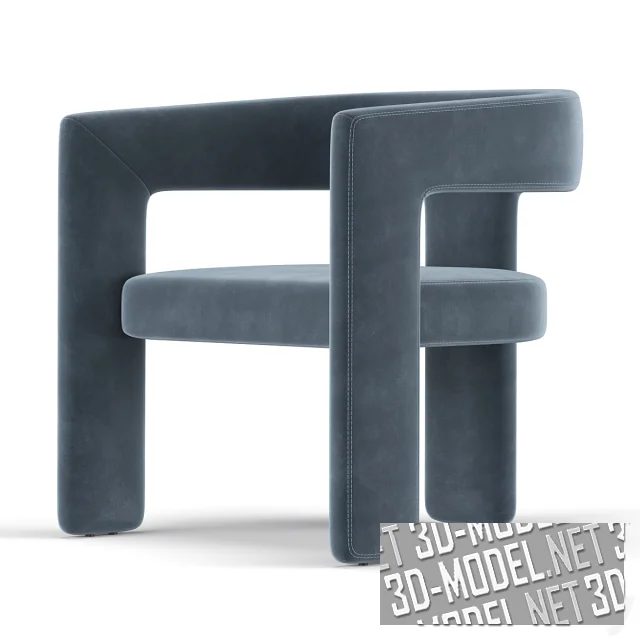 Современный трехногий обеденный стул Effie. Все элементы обтянуты велюром с декоративным белым швом. Широкие передние ножки переходят в горизонтальный огибающий элемент подлокотников и спинки. Третья опора размещена в центре спинки. Обивка представлена в трех цветах: серая, серо-голубая и темно-розовая.