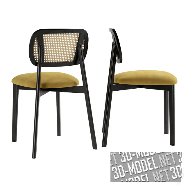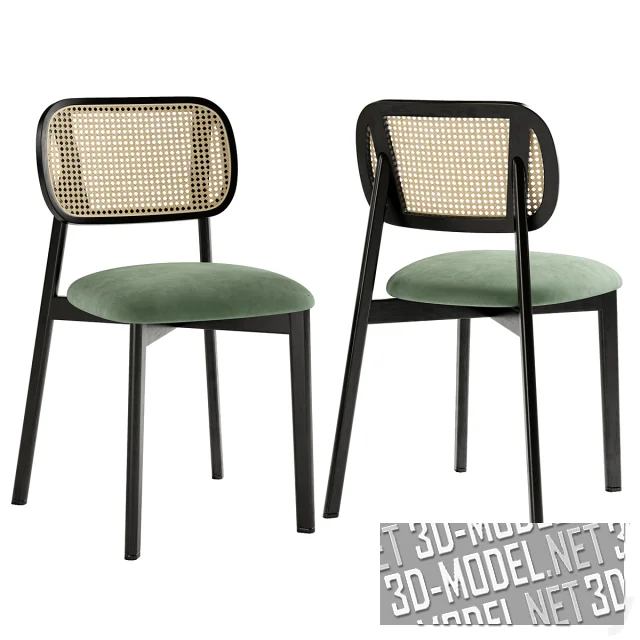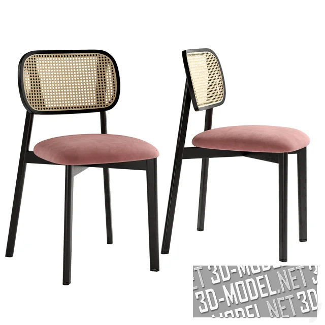 Современный стул Rivio от LA REDOUTE INTERIEURS. Стул с мягким сиденьем и овальной горизонтальной, чуть выгнутой спинкой, заполненной плетением из ротанговой соломки. Ножки и каркас выполнены из дерева с черной тонировкой. Габарит стула: 46,5х50х84,5см. Велюровые обивки подушки сиденья представлены в трех цветах: бледно-желтом, бледно-розовом и бледно-зеленом.