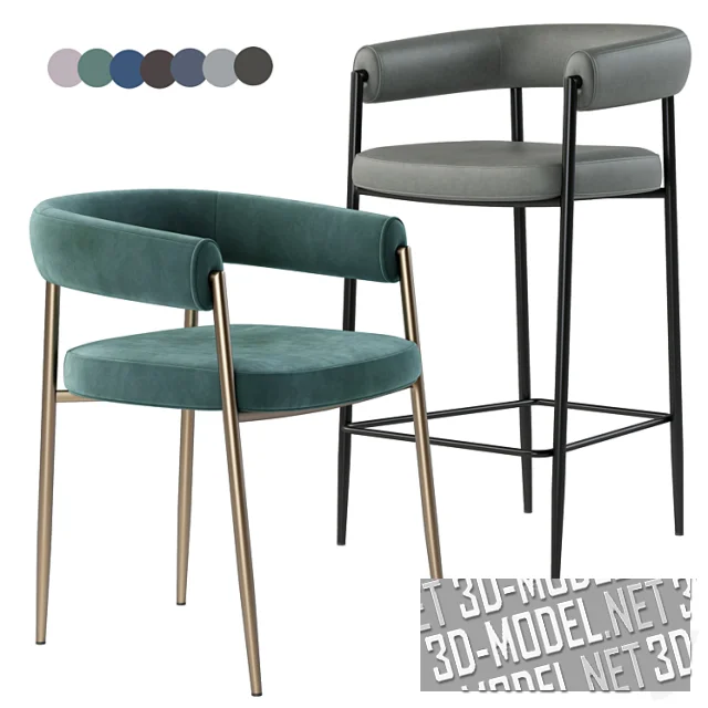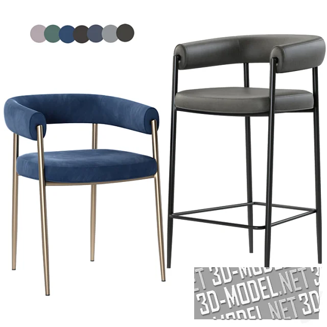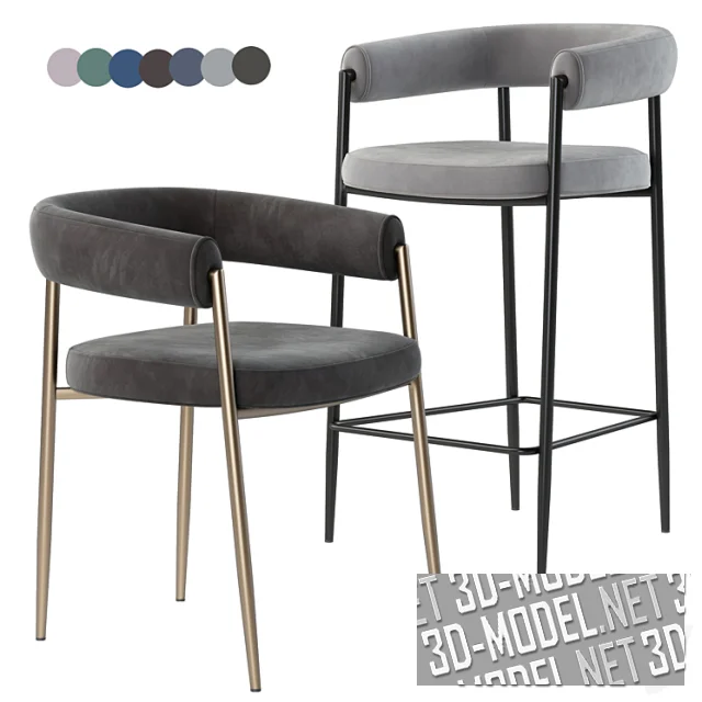 Две модели современного стула (стандартный и барный) Manchester от Deephouse. На каркасе из металлических трубок смонтированы мягкие сиденья и огибающая невысокая спинка, валиком «нанизанная» на элемент каркаса. Габариты стандартного стула: 48х72,5х54,5см. Габарит барного: 56х93х53см. Обивка мягких элементов представлена в семи вариантах велюра и эко-кожи: бледный светло-сиреневый, бледно-зеленый, синий, темно-коричневый, серо-синий, светло-серый, темно-серый. Металл каркаса представлен в двух вариантах: на стандартном стуле - золотистый, на барном - черный.