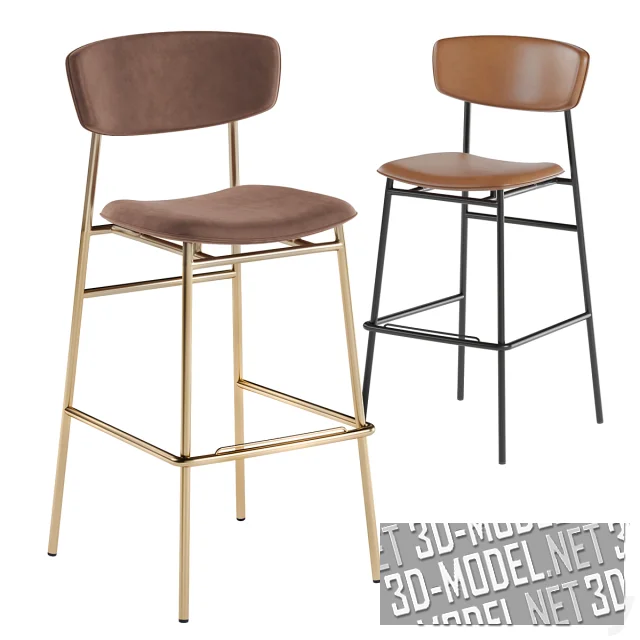 Лаконичный классический барный стул Fifties от Calligaris, на металлическом каркасе из тонкой трубки с поперечинами для ног. Чуть вогнутое мягкое сиденье и горизонтальная выгнутая спинка обиты текстилем или кожей (охристая кожа или изумрудно-зеленый, бледно-синий и коричневый велюр). Металлический каркас и ножки представлены в двух вариантах: золотистый и черный. Габарит стула: 50,5х55,5х110см.