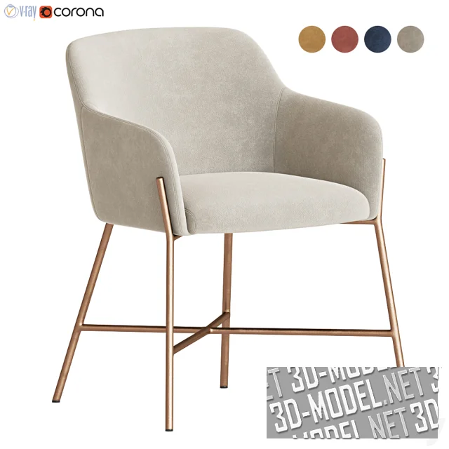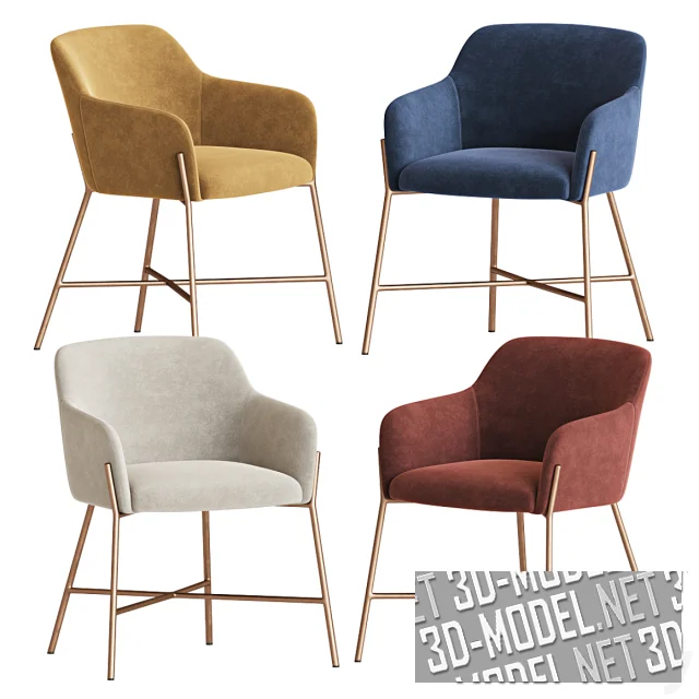 Современный обеденный стул с подлокотниками и бархатной обивкой - Ana Velvet Arm. Основа выполнена из металлической тонкой трубки матового золотистого цвета. Продолжающиеся выше ножек элементы трубки «придерживают и ограничивают» обитый мягким велюром корпус сиденья и огибающей спинки классической формы. Велюр обивки представлен в четырех цветах: белом, терракотовом, темно-синем, бледно-желтом. Габарит модели: 59х64х78см.