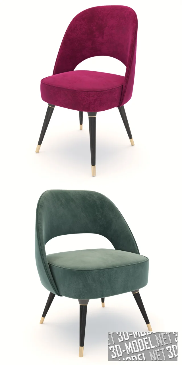 Офисный и обеденный стулья Collins от Essential Home. Черные ножки декорированы золотистыми наконечниками в нижней части. У основания расширяются и имеют тонкую золотистую вставку. Высокая подушка сиденья и огибающий элемент фигурной спинки с гнутым фанерным основанием и глубоким скругленным вырезом снизу обиты велюром. Представлено два цвета обивки: насыщеный темно-малиновый и шалфейный. Модели отличаются габаритами. Габарит обеденного стула: 55х60х85см (d сиденья - 45см). Габарит второго стула: 65х70х81см (d сиденья - 52см).