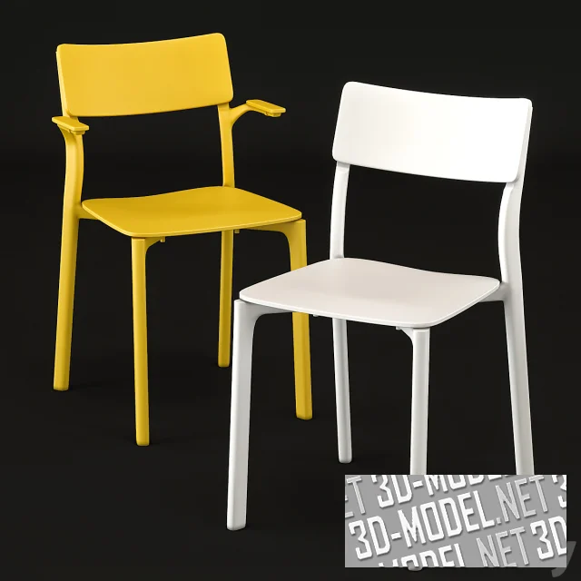Минималистичный компактный стул JANINGE YAN-INGE от Ikea, в двух модификациях - с подлокотниками и без. В конструкции плоскости сиденья, спинка и накладки на подлокотники выполнены из армированного полипропилена. Представлены два цвета - светло-серый и желтый. Габариты стула: 50х46х76см.