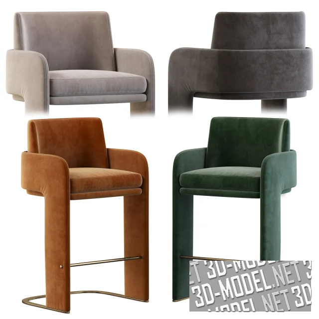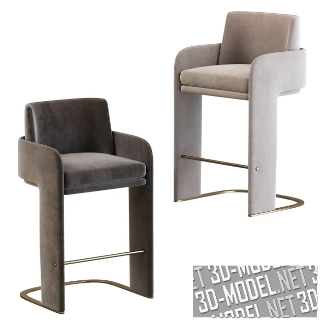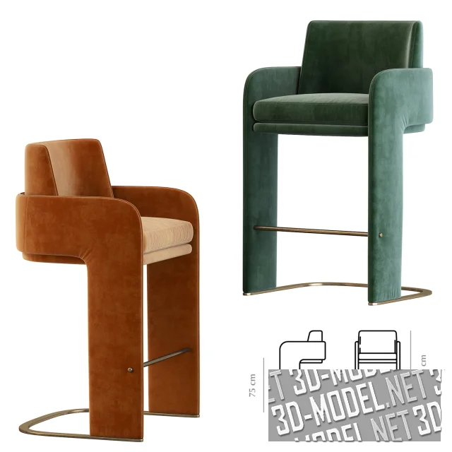 Современный барный стул ODISSEIA от DOOQ с велюровой обивкой в четырех цветах (охристо-оранжевый, темно-зеленый, светло-бледно-бежевый, серый). Габарит стула: 56х57х105см. Конструкция имеет выгнутый элемент, огибающий сиденье и переходящий в две широкие опоры с крепкой основой и мягкой обивкой. Эти опоры стянуты латунным прутом, служащим одновременно и подставкой для ног сидящего. Снизу к опорам прикреплена латунная гнутая скоба, призванная увеличить и распределить площадь опоры. Невысокая мягкая спинка и мягкая подушка обеспечат комфорт сидящему.