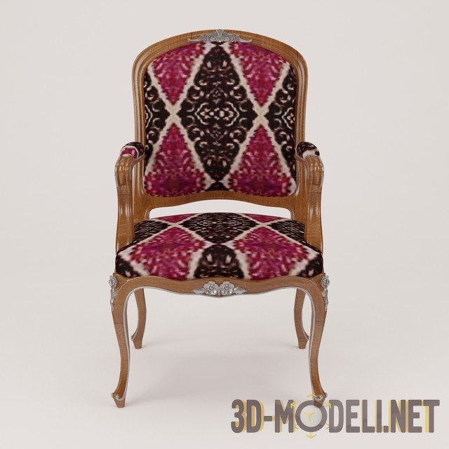 3d модель, с хорошей сеткой и разверткой, материалами и текстурами, стула Modenese Gastone Casanova 12506. Изящный ореховый стул, украшенный резьбой и позолотой. Примечательной деталью стула является яркая обивка, которая станет изюминкой классического интерьера. По желанию, в декоре стула может использоваться кракелюр и роспись.