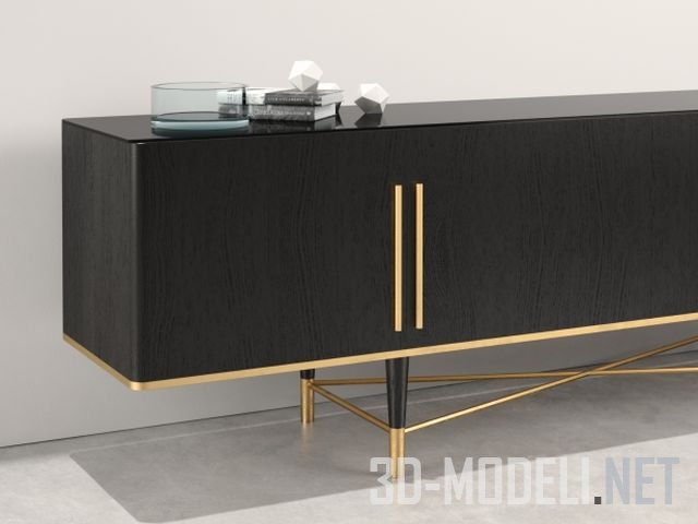 Бренд Gallotti & Radice, Италия и дизайнер Carlo Colombo позаботились о том, чтобы в современном интерьере появилась такая стильная мебель, как креденс из серии «Tama». Сервант представлен в черной лакированной отделке с латунными деталями. Ромбоидальный выгравированный узор на внутренней стороне стекла смотрится изумительно. Модель поставляется с полкой из стекла «grigioItalia» и деревянным подносом. Габаритные размеры: 240 x 48 x 72 см.
