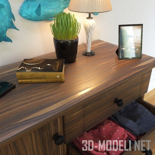 Деревянный комод и декор-рыбы