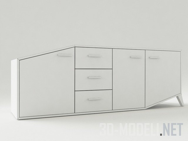 Интересный комод с ассиметричной геометрией, оригинальный дизайн дополняет теплая отделка из дерева. Материалы настроены, текстурные карты в комплекте.