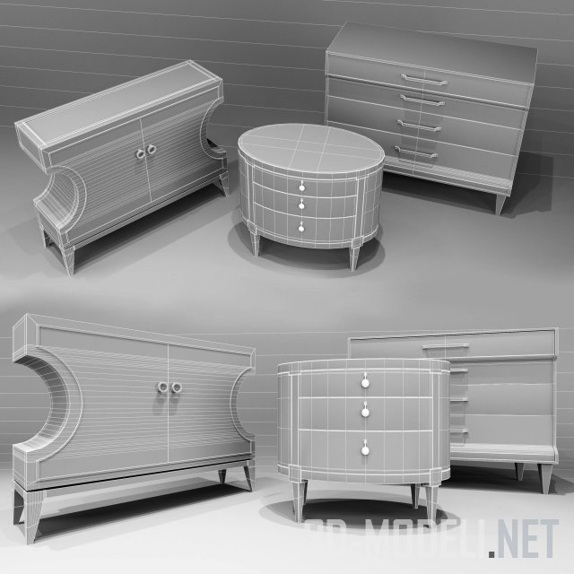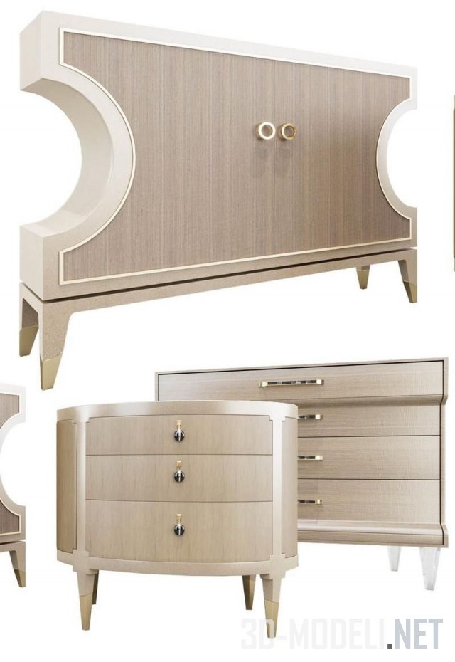 Набор мебели для интерьера в стиле модерн от бренда Caracole: три тумбочки различной конфигурации и размера, светло-бежевого цвета. Подробней: