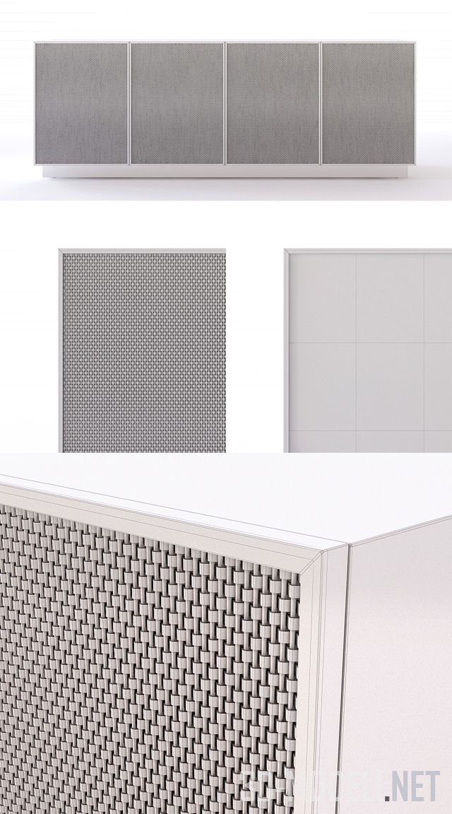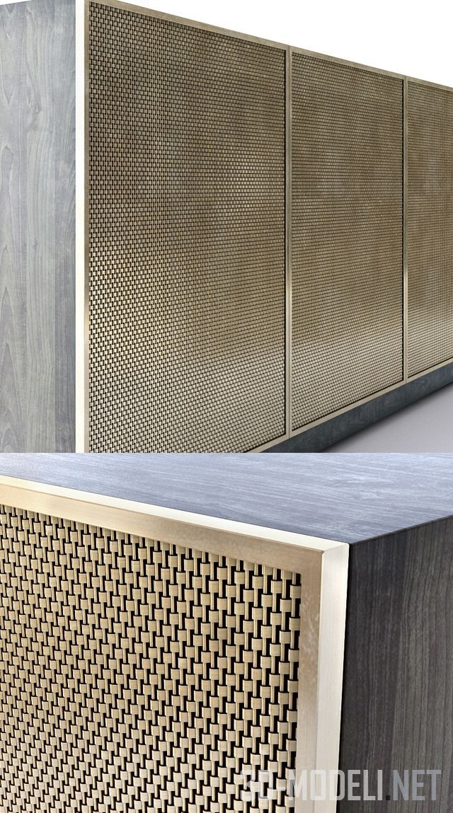 Тумба под телевизор, модель Bernhardt Profile Entertainment. Мебель с оригинальными фасадами на четырех створках. Фасады выполнены в виде декоративной рамки с заполнением из плетенки. Габариты консоли: 198 х 50,5 х 71 см.