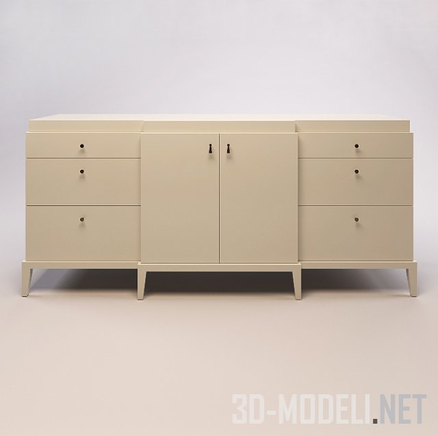 Многофункциональный лакированный комод, модель Manhattan 9758 от бренда Powell&Bonnell. Комод оснащен шестью выдвижными ящиками на пологих выдвижных полках, имеет две двери с регулируемыми полками, лакированную внутреннюю поверхность, сатинированное никелевое покрытие и коническую деревянную основу.