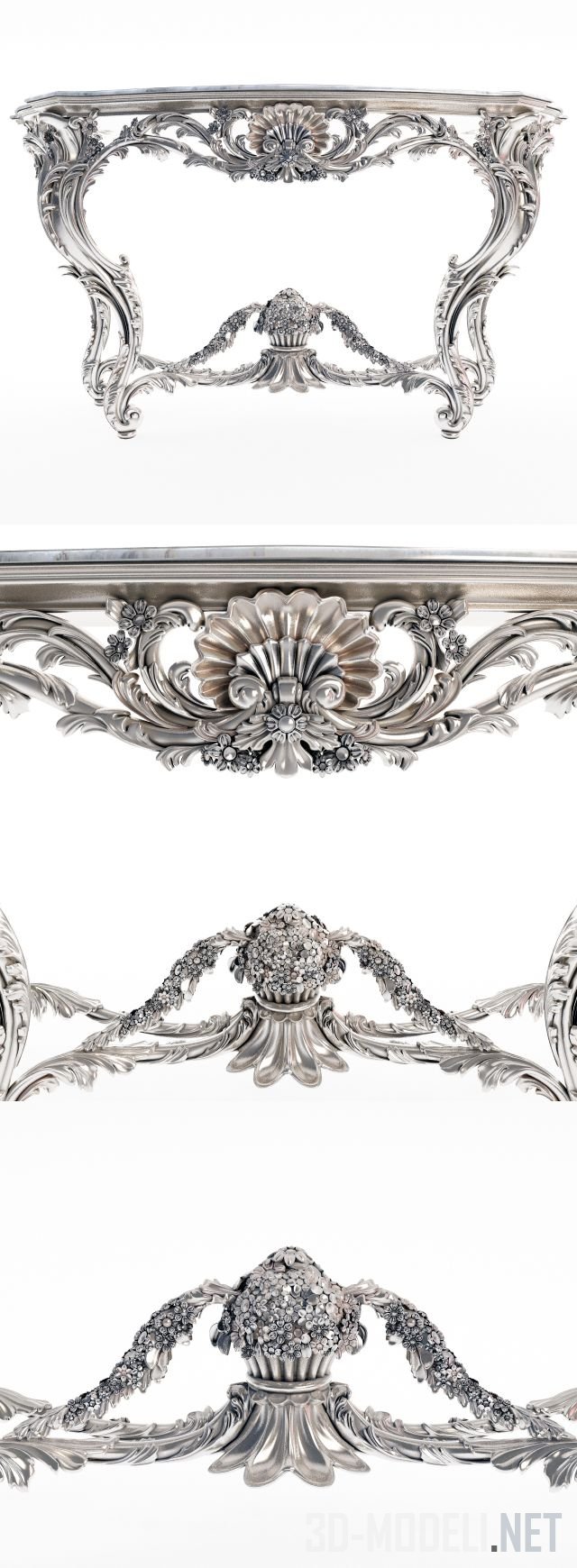 Роскошная классическая консоль от Roberto Giovannini, выполнена в стиле Людовика XV. Консоль с резным основанием и столешницей из мрамора. Размеры консоли: 170 х 91 х 54 см.