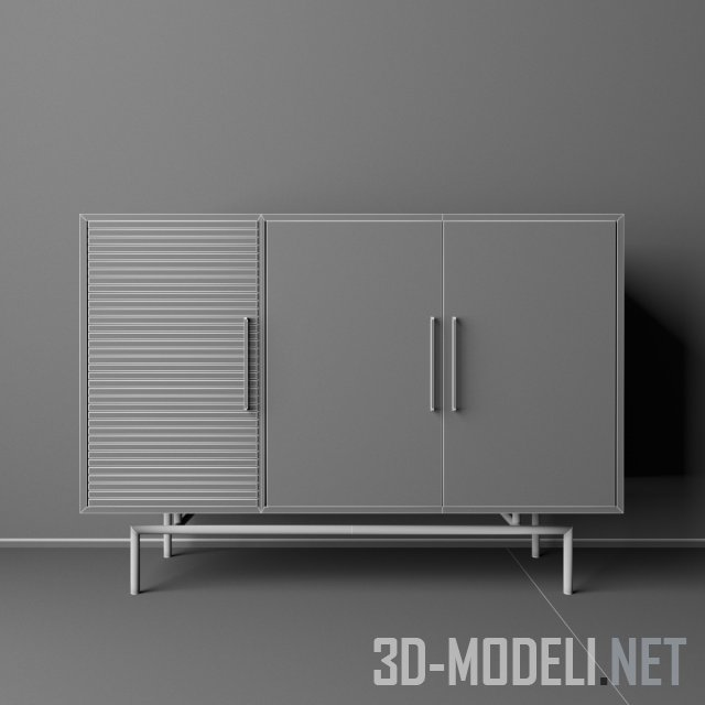 Лаконичный прямоугольный буфет со столешницей, боковинами и левым фасадом из темного дерева, модель gold Nordal. Две других дверцы на фасадах карамельного цвета, с выраженной текстурой дерева. Основание в виде согнутых трубок, сделано из металла золотого цвета. Размеры буфета: высота 85 см, ширина 120 см, глубина 40 см.