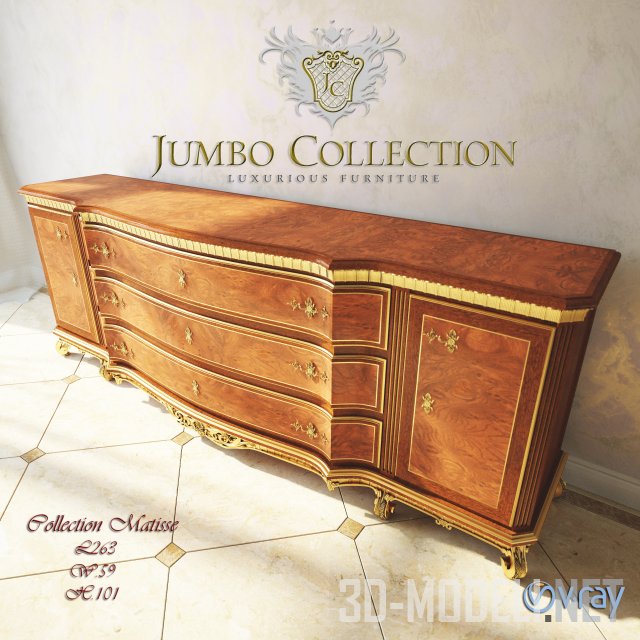 Изготовленный в классическом стиле комод Matisse от производителя Jumbo Collection. Благородность натурального дерева, резные элементы и позолота сделают комод украшением интерьера. Размеры комода: 263 W.59 H.101 см.