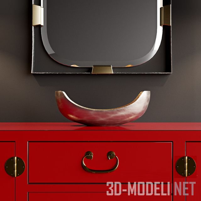 Яркий и экстравагантный набор, в основе которого красного цвета консоль LEXINGTON (PACIFIC ISLE MEDIA CONSOLE 100SR-660). Дополнена симметрично расставленными настольными лампами JRL-8865 от John Richard и декоративными предметами от Arteriors: это зеркало Frankie Rectangular DJ2049 и ваза Swain Centerpiece 6212.