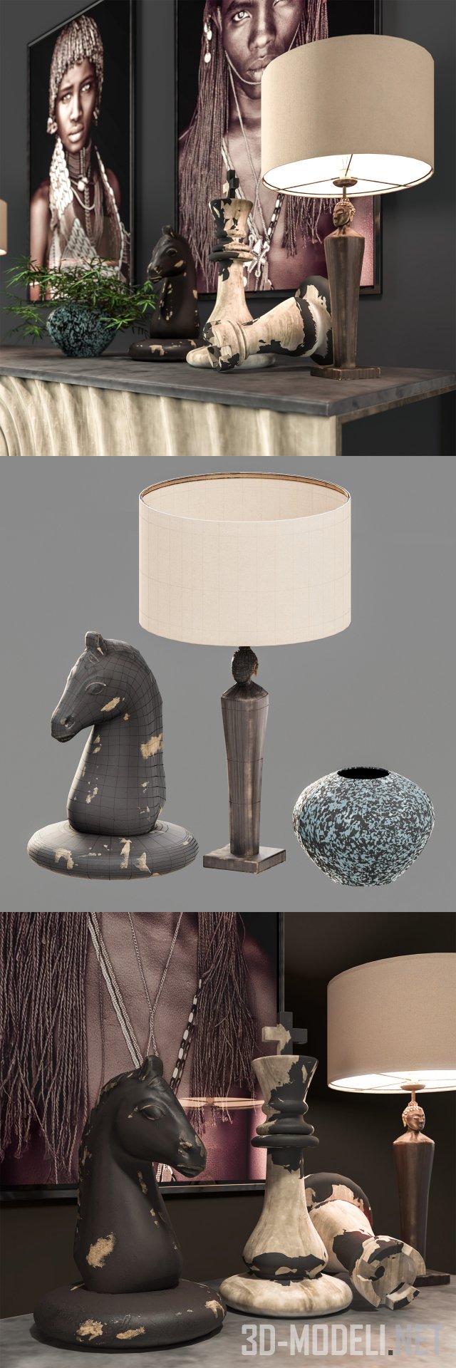 Аутентичная консоль для создания африканской атмосферы, дополнена соответствующим декором. Это картины, настольные лампы, статуэтки и растения. Все текстуры собраны в архиве.