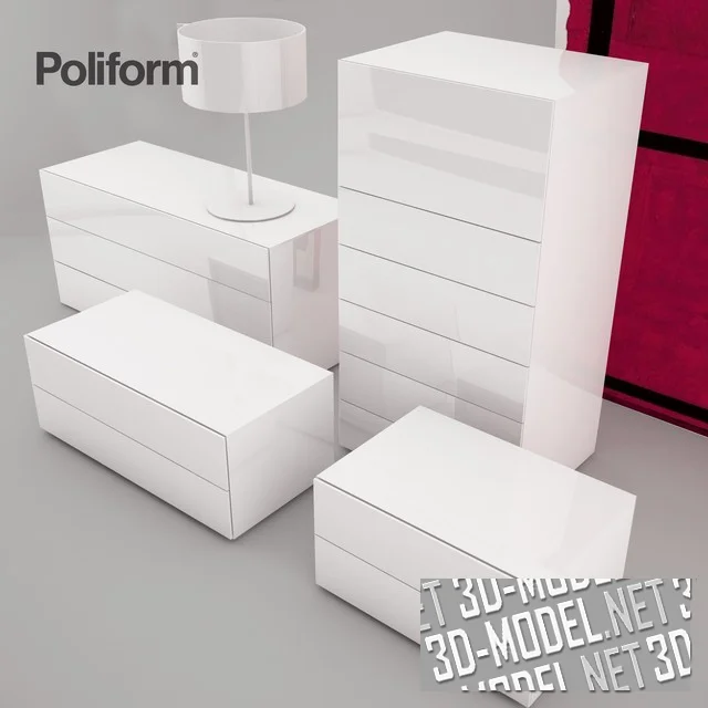 Dream» спроектировал дизайнер Marcel Wanders в 2006 году. Отличная мебельная система, которая придает пространству оригинальный и индивидуальный вид. Ночной столик превращается из уникального контейнера для хранения в пуф, если просто повернуть крышку, а письменный стол может быть полностью или частично переделан на комод. Сочетание отделки - глянцевые лакированные цвета и матовые, а также грецкий орех, создают очень красивую композицию. Настольная лампа и картина присутствуют в сцене. 3D модель высокого качества.