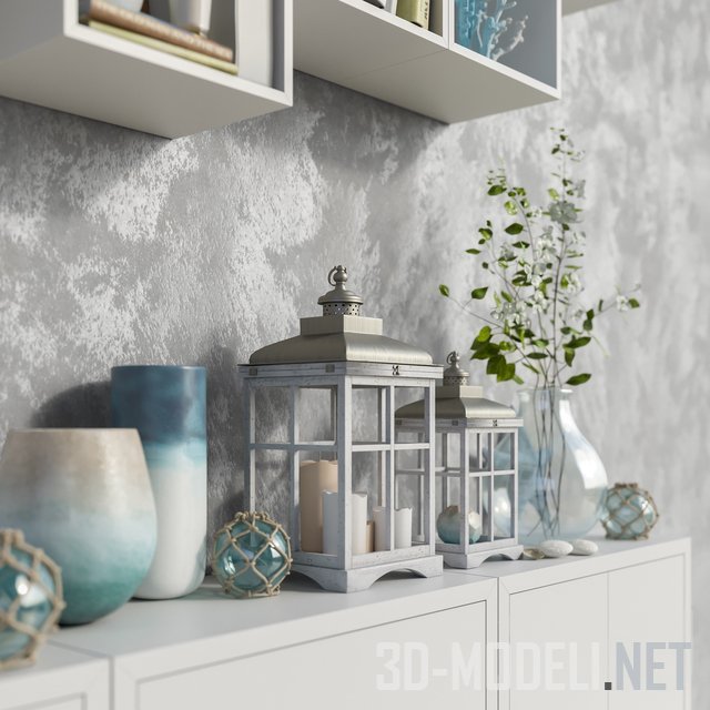 Современная модульная мебель от IKEA – полки и напольные тумбы Экет. Габариты настенных модулей: 35 х 35 х 25 см. Общий габарит блока настенных модулей: 210 х 70 х 25 см. Габариты напольного модуля: 70 х 76 х 35 см. Весь напольный блок: 210 х 76 х 35 см. Мебель укомплектована аксессуарами: книгами, журналами, посудой, подсвечниками, фотопанно, декоративными вазами (TURQUOISE CLOUD VASE - LARGE и LUNA BLUE FROSTED VASE). Предлагаются пять базовых цветов мебели: белый, синий, серый, два оттенка оранжевого.