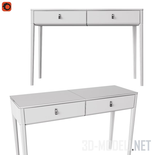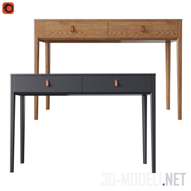 Два варианта консольного косметического столика, размером 1200х400х800мм. Под столешницей оборудовано два выдвижных ящика. Столы в двух декорах: темно-сером и с текстурой дуба под лаком.