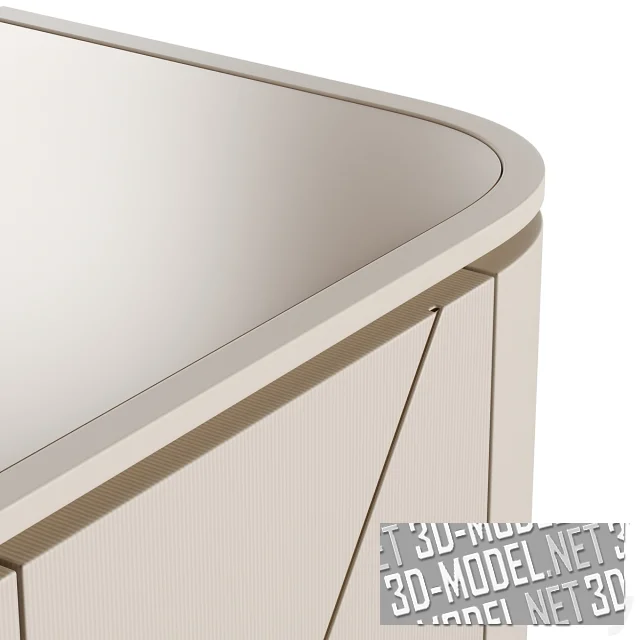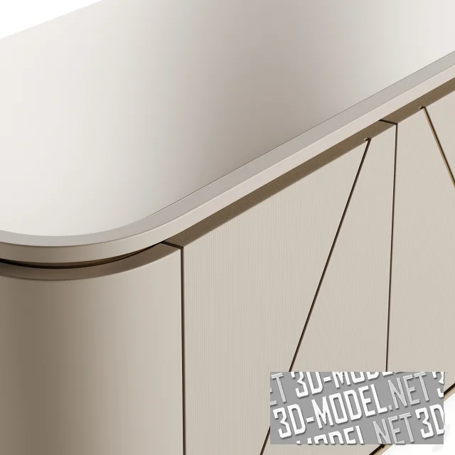 Объемная современная система хранения в изысканый интерьер в виде крупной тумбы ANTIUS Low Cabinet Lacquer от Fendi. Тумба выполнена из дерева. Передние углы плавно скруглены. Верхняя плоскость тумбы отделана профилем. Фасады украшены геометрическими канавками и мелким легким гофрированным рельефом. Между столешницей и корпусом смонтирована металлическая золотистая углубленная вставка. Габарит тумбы: 241х61х57см.