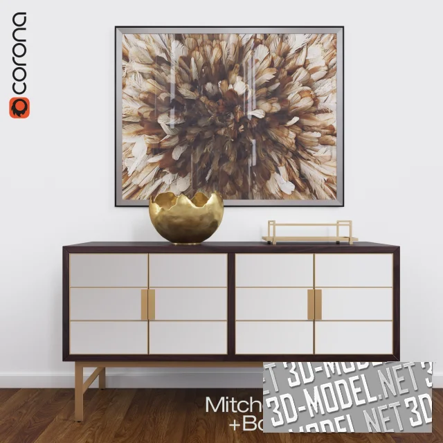 Современный комод DELANEY, производства Mitchell Gold + Bob Williams. Гармоничным дополнением служит картина, позолоченная чаша и подставка. Такая универсальная композиция подойдет для интерьеров как в классическом, так и в современном стилях.