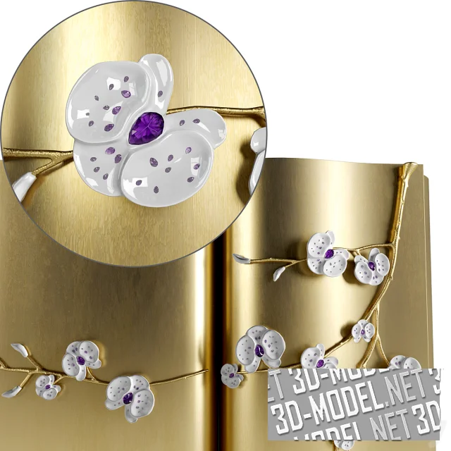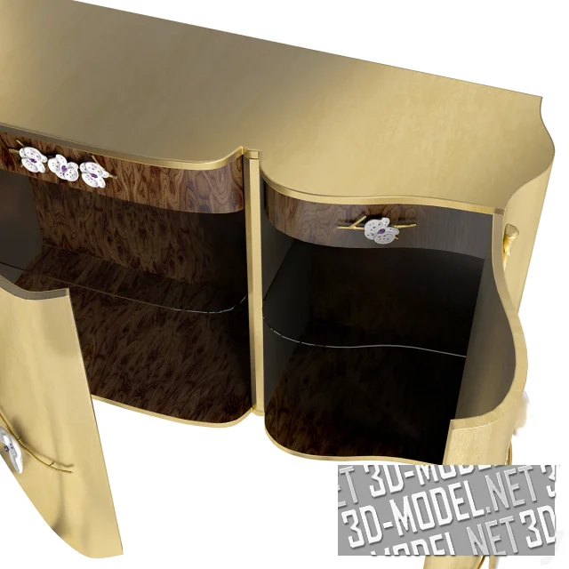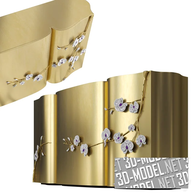 Извилистая, криволинейная форма характекризует трехдверный комод MEMOIR Honor из листового золота. Вдохновленный высоким ювелирным искусством, Honor украшен металлическими ветвями орхидеи ручной работы. Сверкающие кристаллы Swarovski подчеркивают ювелирный статус комода и делают его невероятно роскошным и ярким предметом мебели. Размеры: Ш 200 х Д 50 х В 90 см.