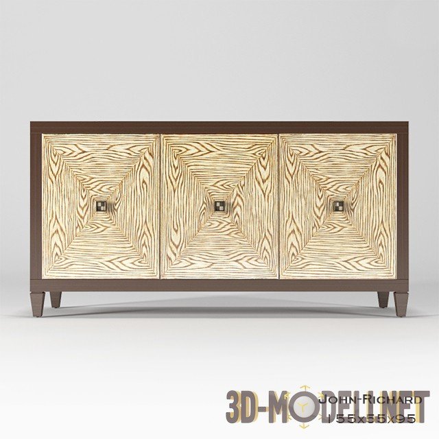3d модель буфета ручной работы от John-Richard. Сделана мебель из акации. Имеет в конструкции три двери, каждая из которых делится на четыре части, украшенные росписью. Качественная имитация зерна натурального дерева на стеклянной панели красиво подчеркнута латунными ручками, расположенными по центру фасадов. Размер буфета: 155 х 55 х 95 см.