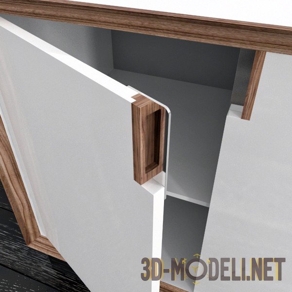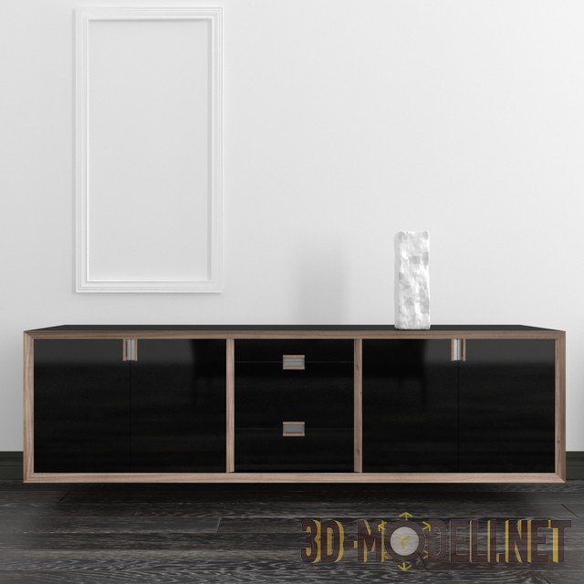 3d-модель современной тумбы для гостиной, Sestante производства Besana, Италия. Тумба сделана из дерева, в отделке лаком. Имеет в конструкции распашные дверцы и выдвижные ящики, которые красиво декорированы элементами, выполненными из массива ореха. Дверцы могут быть как светлого, так и темного цвета. Размеры тумбы: 76 х 220 х 40/52 см. В архиве находятся файлы в формате 3ds max 2014, 2015, obj, fbx. Renderer: V-Ray 3