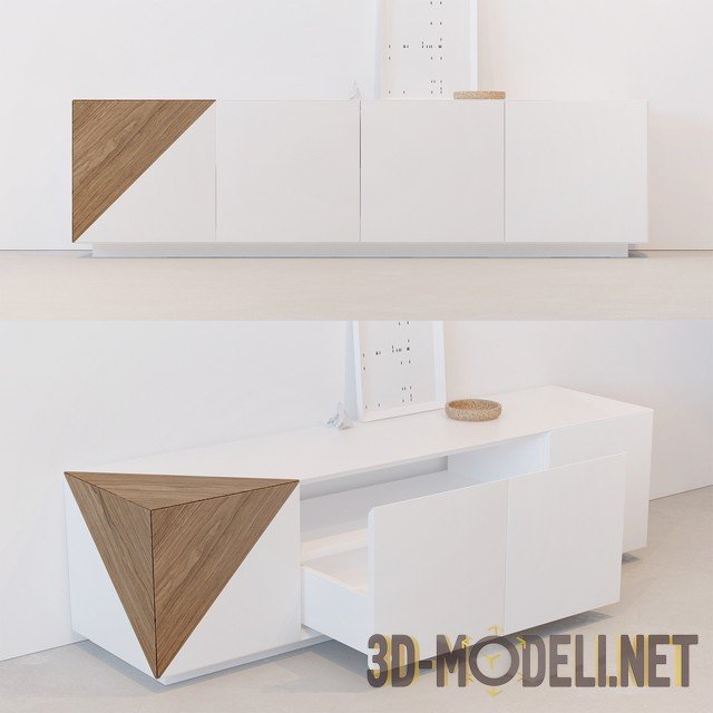Стильная тумба i#02 от бренда Mottu. В изготовлении и отделке использовались шпон Alpi, лак и краска на двухкомпонентной основе, фурнитура BLUM. Тумба может быть в различных размерах (в сцене присутствуют 11 моделей), а также иметь такие вариации монтажа, как крепеж к стене или металлическая опора для напольного использования тумбы. В серии представлены четыре вида шпона и более 100 цветов покраски.