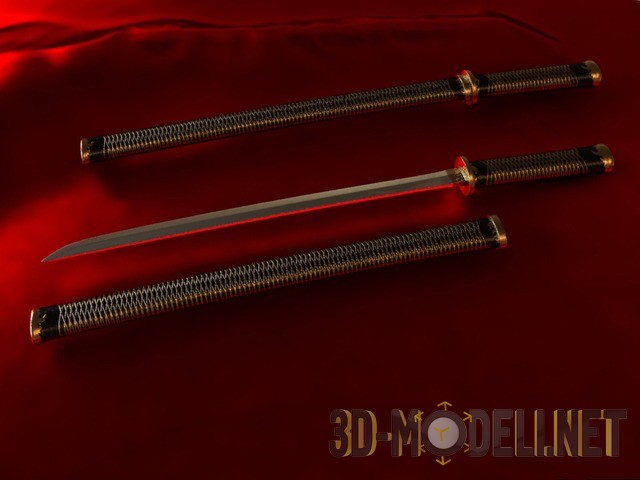 Высокополигональная 3D-модель двуручного изогнутого японского меча – катаны. Данное клинковое оружие используется в целях самообороны, а также для нанесения колющих и режущих ударов противнику. На создание модели вооружения автор потратил порядка 5 часов.