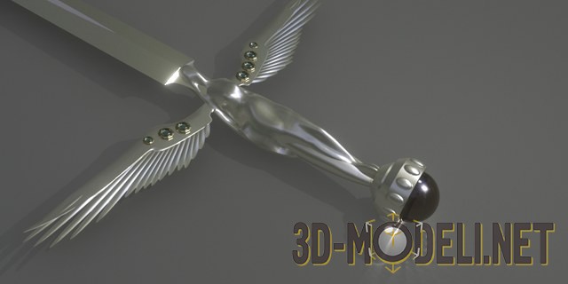 3D модель красивого меча с эфесом в виде крыльев. Изящное, тонкое лезвие и фэнтезийный эфес из крыльев украшают это уникальное холодное оружие - воображение рисует этот меч, например, в руках у воина-эльфа.