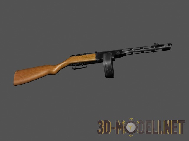 Очередное пополнение на нашем оружейном складе — пистолет-пулемет Г.С.Шпагина. Краткая историческая справка: пистолет-пулемет Г.С.Шпагина был принят на вооружение Красной Армии в декабре 1940 года под названием «7,62-мм пистолет-пулемет системы Шпагина обр. 1941 г. (ППШ-41)». Данная модель была изготовлена автором примерно за 11 часов (3 часа — моделирование и еще 8 — рисование текстуры) и включила в себя порядка 1300 полигонов. Искренне надеемся, что данный ствол найдет достойное применение в любой компьютерной игре — не важно, будь то какой-либо продвинутый шутер уровня Call of Duty 3 или же стратегия.
