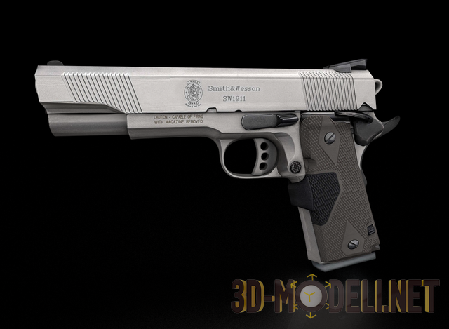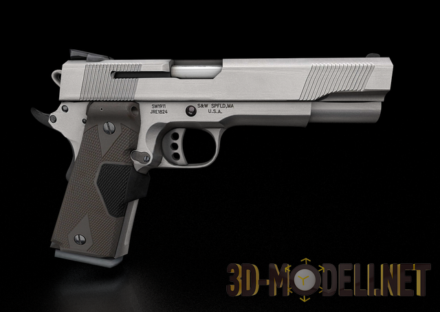 Отличная 3D-модель пистолета Smith and Wesson 45 ACP. Модель сделана в Blender и экспортирована в другие форматы. В комплекте есть текстура с UVW-разверткой, карты нормалей, блика, occlusion map - модель пистолета готова для использования в игровых движках. Также в архиве вы найдете текстуру пламени выстрела, для создания партиклов.