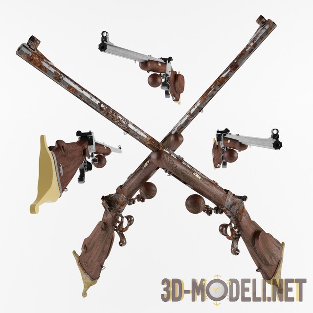 Rifle J Harmony Bern from the National Firearms Museum collection. Attached two HQ 3D-models of rifles: one new and one an antique. Textures included.