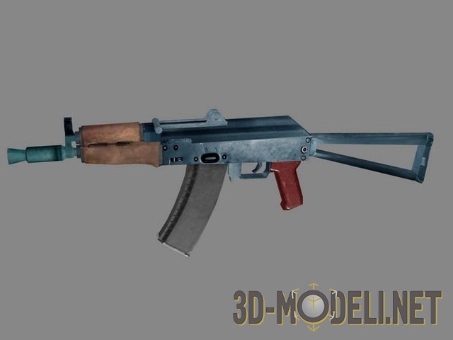 3D модель автомата АКС-74-У. Модель носит статус low-poly-объекта — состоит из 1889 треугольников, качественная текстура размерности 512*512 прилагается. На создание описываемого вооружения у автора ушло порядка 3 часов. Отметим также, что автор этого ствола не возражает, скорее даже призывает вас, народные умельцы, на модифицирование данного орудия убийства. Так что проявите фантазию — прикрутите к автомату такие новомодные компоненты, как глушитель, гранатомет и прочие полезные приспособления.