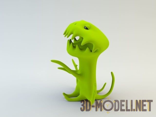 Игрушечное существо из мира хищных растений. Зелёное создание с большой зубастой пастью, черными, полузакрытыми глазками и несколькими корешками-щупальцами, в некоторых из которых угадываются лапки и хвостики.