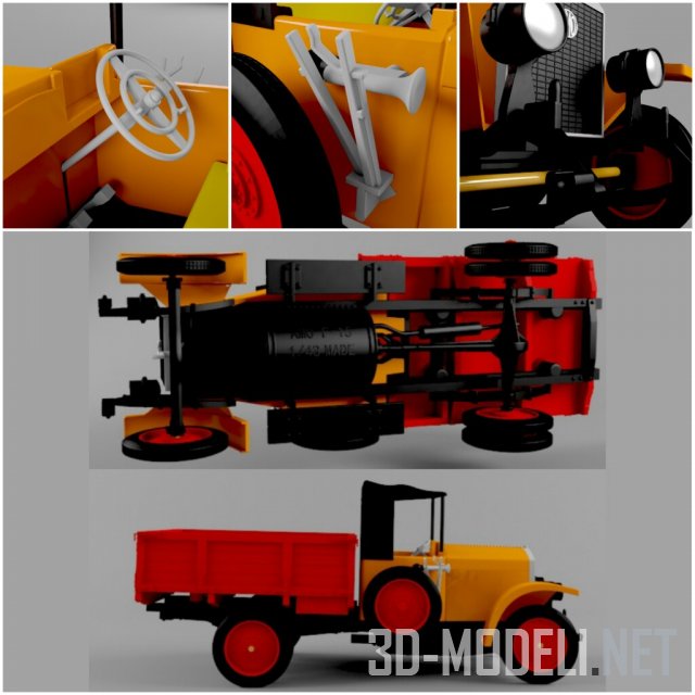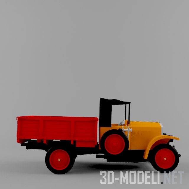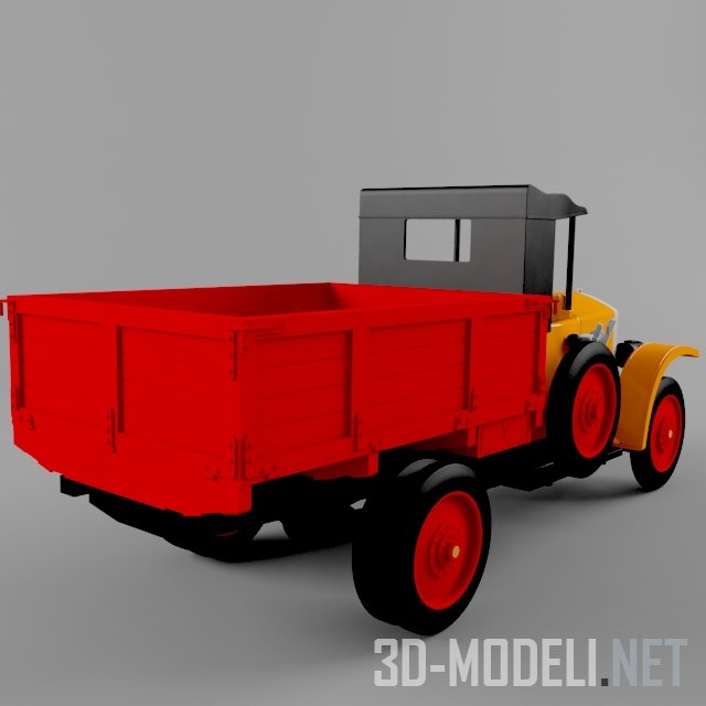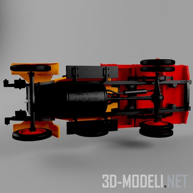 Макет коллекционной модели первого советского автомобиля - АМО-Ф-15. Красный кузов, красные колеса с черными шинами и желтая кабина с черной задней стенкой отличают эту модель.
