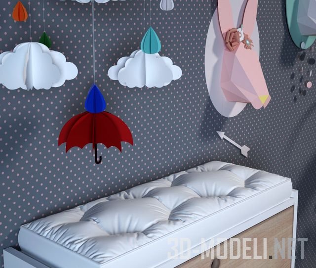 Сет дополняют игрушки на кроватку «Сказочные истории» (Timbuktales), декоративные бумажные зайцы для украшения стен, и лошадка PONI.