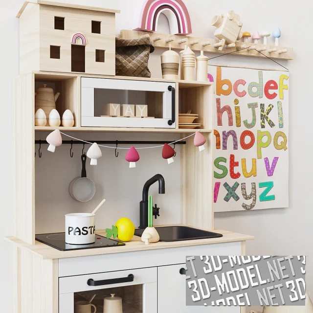 Качественная трехмерная модель, созданная на основе оригинального дизайна и предназначенная для универсального использования в различных проектах, включая интерьерные визуализации детской.