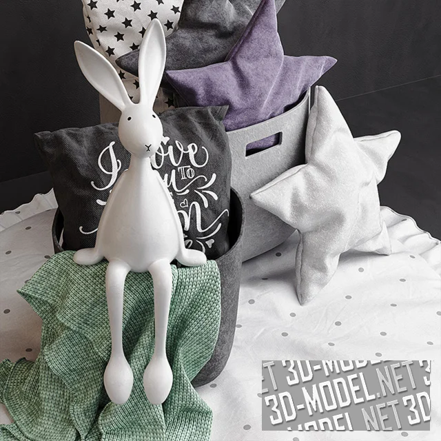 В наборе присутствуют корзины для хранения, плед, подушки (в том числе, и в форме звезд), коврик диаметром 100 см.