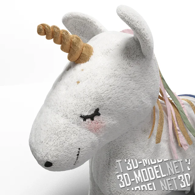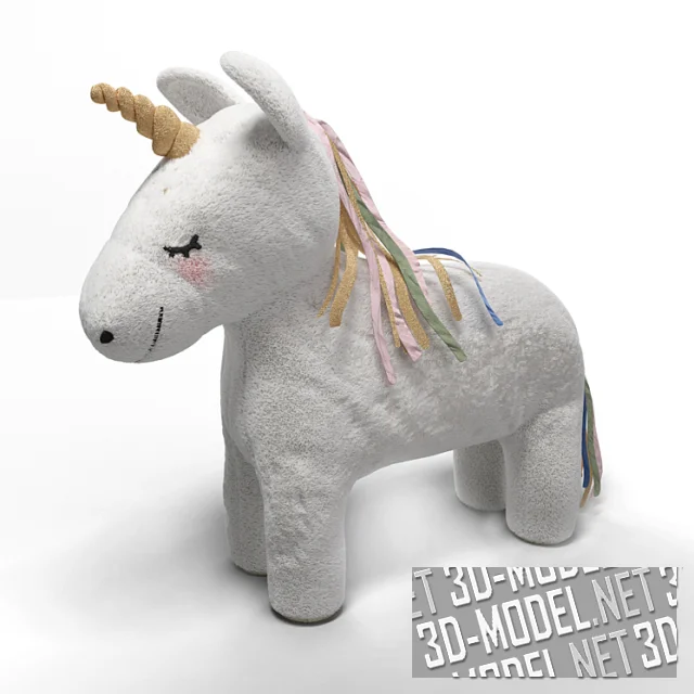 Милая и романтичная плюшевая игрушка от H&M, в виде сказочного единорога. Высокого качества 3d-модель сделана очень детально, проработаны аппликации и вышивка. Наполнителем игрушки является полиэстер. Размер единорога составляет примерно 17x48x50 см. Настроенные материалы Corona и необходимые текстуры в архиве.