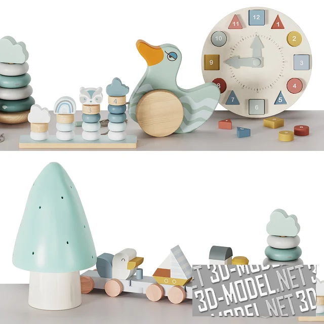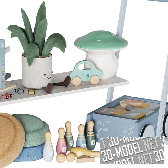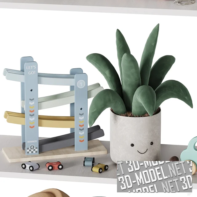Приятным дополнением к интерьеру детской комнаты станут игрушки и акссесуары. Правильно подобранные по стилю и цвету, они сделают пространство живым и реалистичным. В этом наборе множество игрушек и декоративных элементов, среди которых варианты от Acorn & Pip. Это бренд, который олицетворяет определенный стиль жизни и предлагает своим клиентам больше, чем просто продукт. Архив содержит точные трехмерные копии следующих предметов: Ramp Racer Cars Blue (28x28x10 см), Bowling Set (26.5x20x5 см), Fantasyroom plant aloe vera (L45см), Jade Medium Toadstool Lamp (26 x 20 см) и пр.