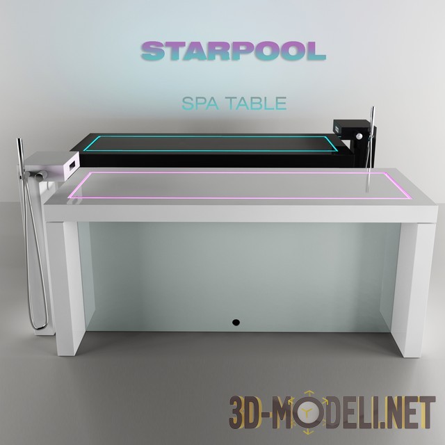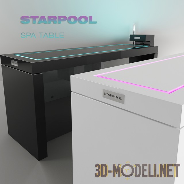 3d-модель массажной кушетки «SPA TABLE» от производителя STARPOOL, дизайн Cristiano Mino, коллекция SPA World. Это инновационная разработка, для пилинга и других процедур, которая сочетает в себе эксклюзивный дизайн и высокую функциональность. СПА-стол также оборудован небольшим душем, для промывки и чистки кожи. Покрытие Korakril® гарантирует максимальную гигиеничность и абсолютную простоту очистки. Кушетка также оснащена семицветной программируемой светодиодной системой, с поворотным или фиксированным вариантом освещения. Качественная модель с настроенными материалами и текстурами.