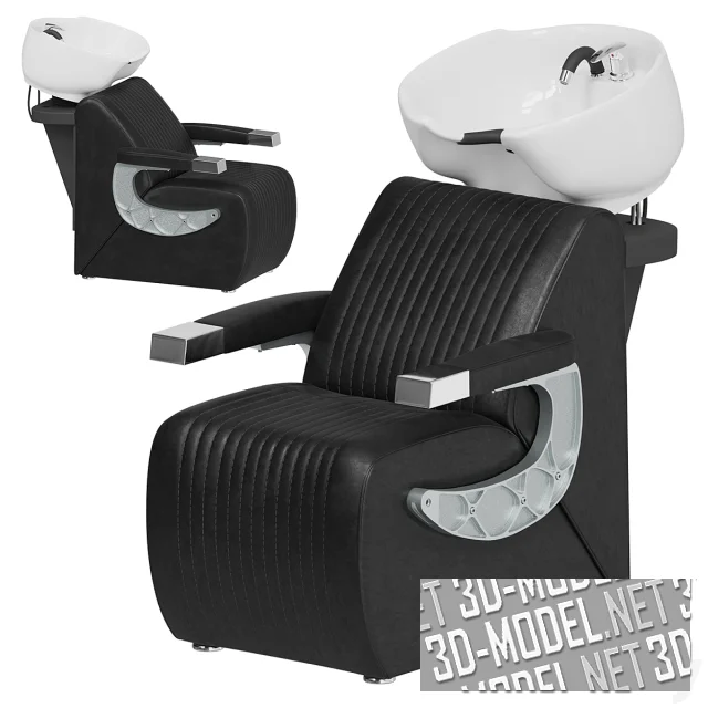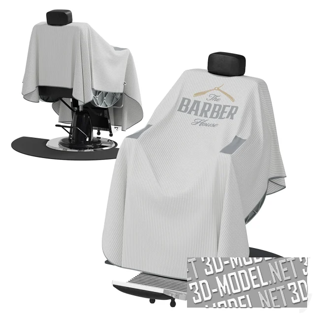 3D модель парикмахерского кресла может использоваться как с халатом, так и без. На халате можно разместить любой логотип, используется материал CoronaLayered, VrayBlendMtl. Одно из кресел представлено с откидывающейся спинкой, удлиненным подголовником и регулируемой подставкой для ног. Эргономичный дизайн отвечает всем требованиям индустрии.