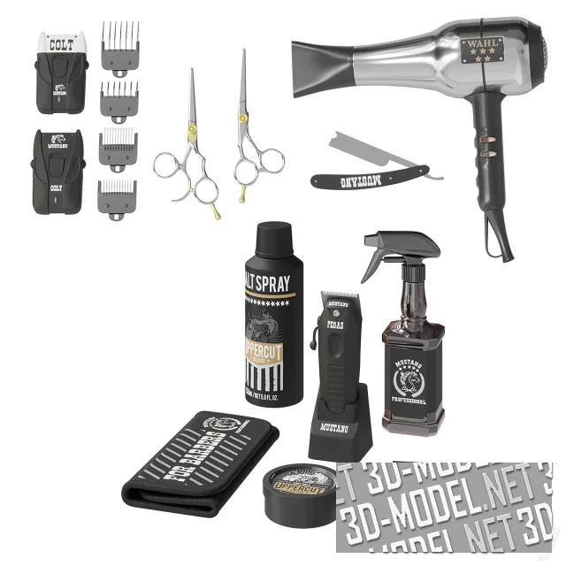 Архив также содержит такие предметы, как парикмахерская раковина, тележка, зеркало с консолью, настенную и напольную барбер-ванну, напольный барбер-коврик, наполнитель для рабочих поверхностей в виде полотенец, косметику, фен, бритвы, машинку для стрижки волос, насадки для машинки, бритву, ножницы, пульверизатор.