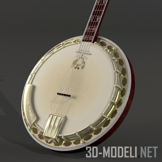 3D-модель музыкального инструмента банджо. Профессиональная модель с готовыми материалами и Hi-Res текстурами - можно сразу использовать в своих сценах.