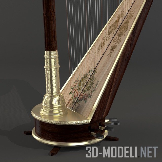 3d-модель арфы - музыкального инструмента с красивым звучанием. Отличная, детальная модель с настроенными Vray-шейдерами, все необходимые текстуры есть.