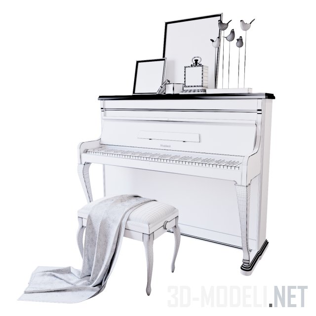 Классический инструмент, пианино Weinbach белого цвета. В наборе присутствует банкетка, часы Bond Street London, статуэтка 5 птиц на деревянной подставке, рамы с иллюстрациями от Ruben Ireland и Urban Botanic.