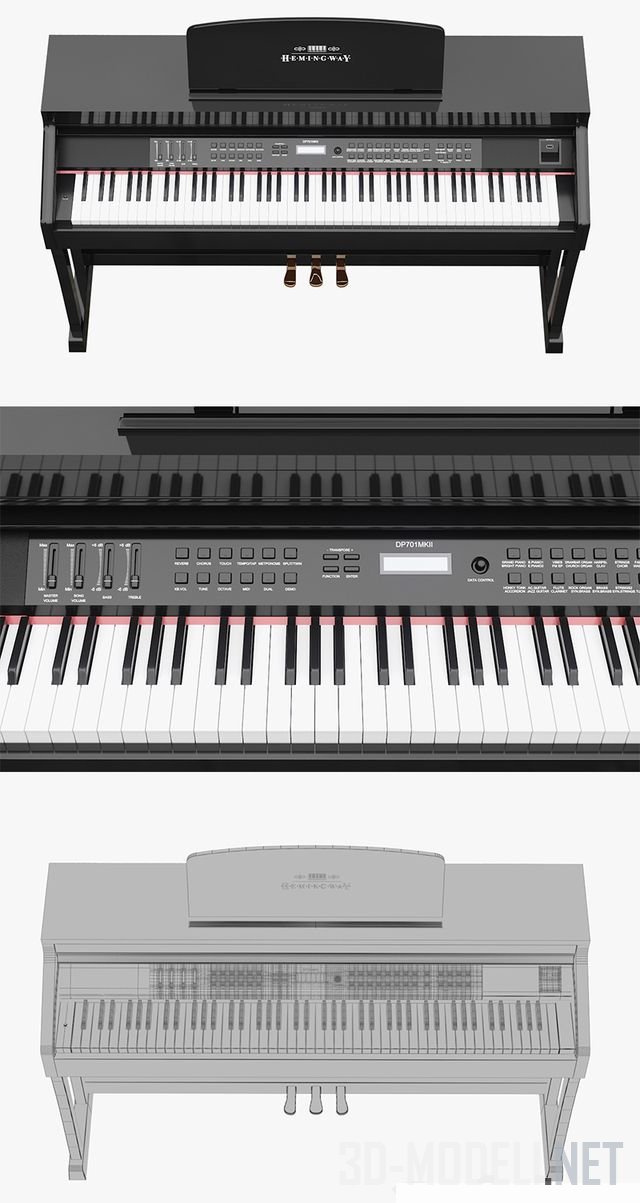 Современное цифровое пианино Hemingway DP-701 MKII BP. Инструмент черного цвета, размер 1400 x 490 x 860 мм. Пианино обеспечивает удобство игры и звук концертного рояля. Колонки 2x15 Вт + 2x5 Вт.