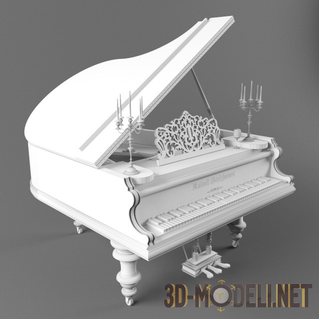 3d-модель рояля знаменитой венской марки Rudolf Stelzhamer, с двумя подсвечниками и бокалом. Великолепные классические формы черного глянцевого инструмента станут непревзойденным акцентов интерьера просторной гостиной, салона или концертного зала. Золотые пятисвечные канделябры, бокал, открытая крышка клавиатуры и поднятый резной пюпитр как будто замерли в ожидании Маэстро.